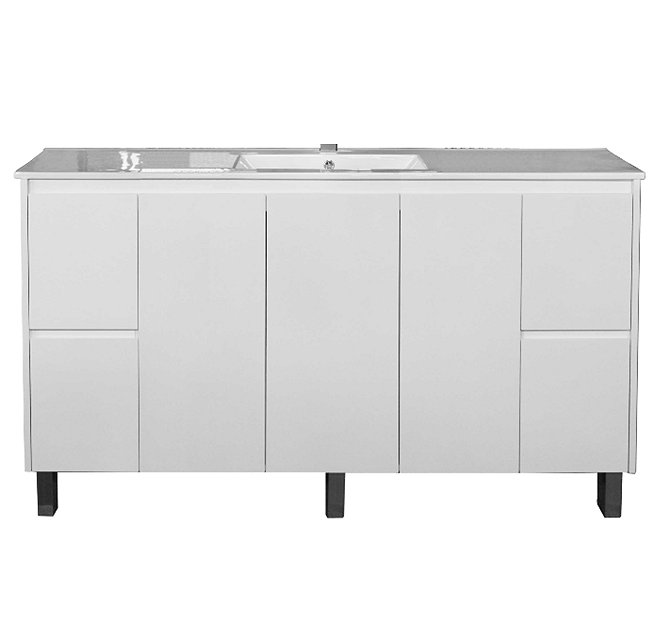 Avalon 1800 Free Standing White poly 2 pack 45° finger pull Soft closing (4 Draw) Kickers or legs Dimensions: Width