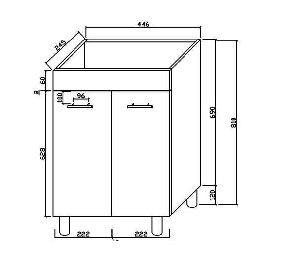 800mm Stallion Kitchen Base with 2 Drawers – BD80-2 Measurement: 800mm(Width) x 860mm(Height) x 580mm(Depth) (+/- 3mm tolerance) 2 drawer base